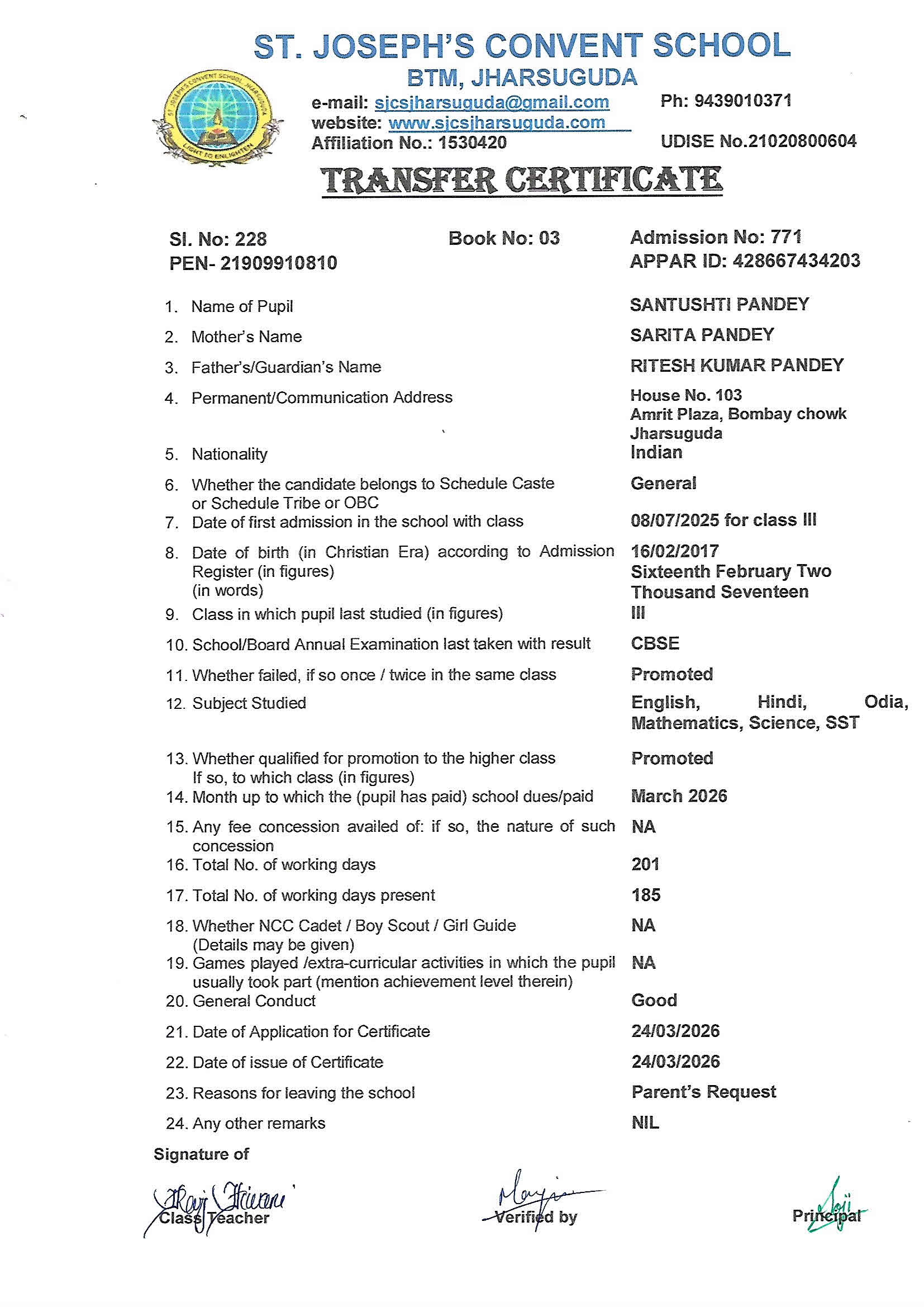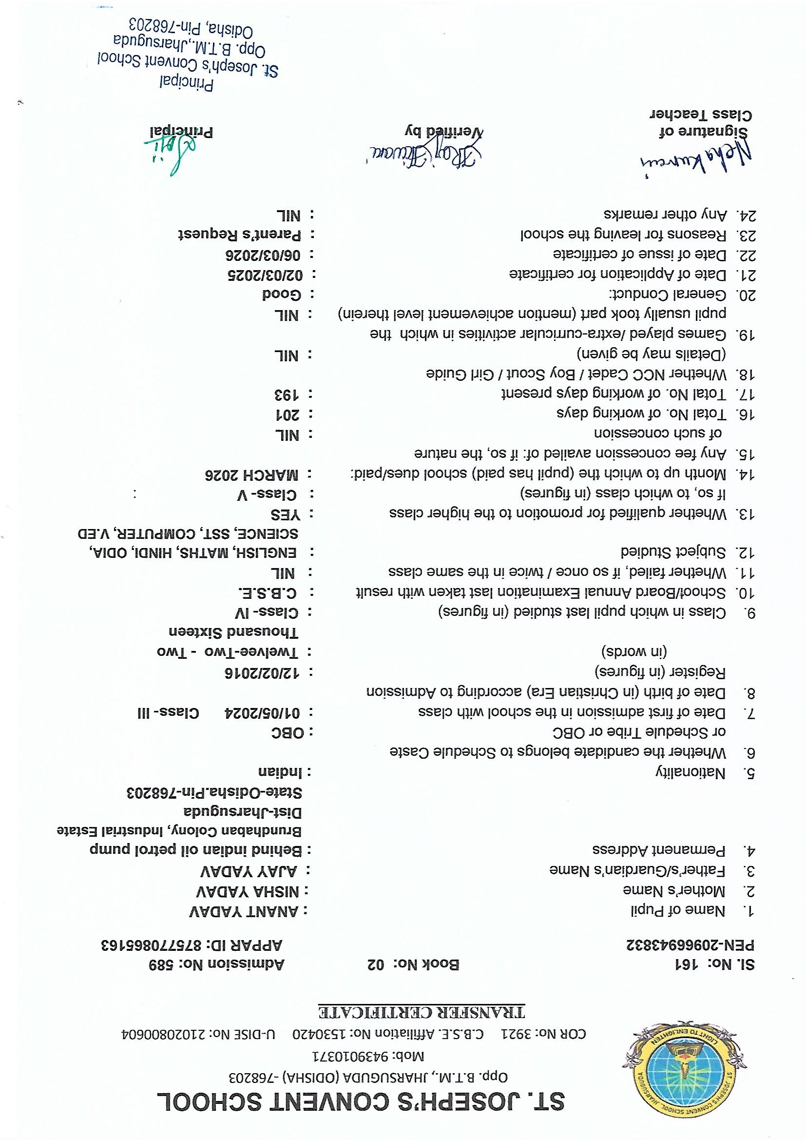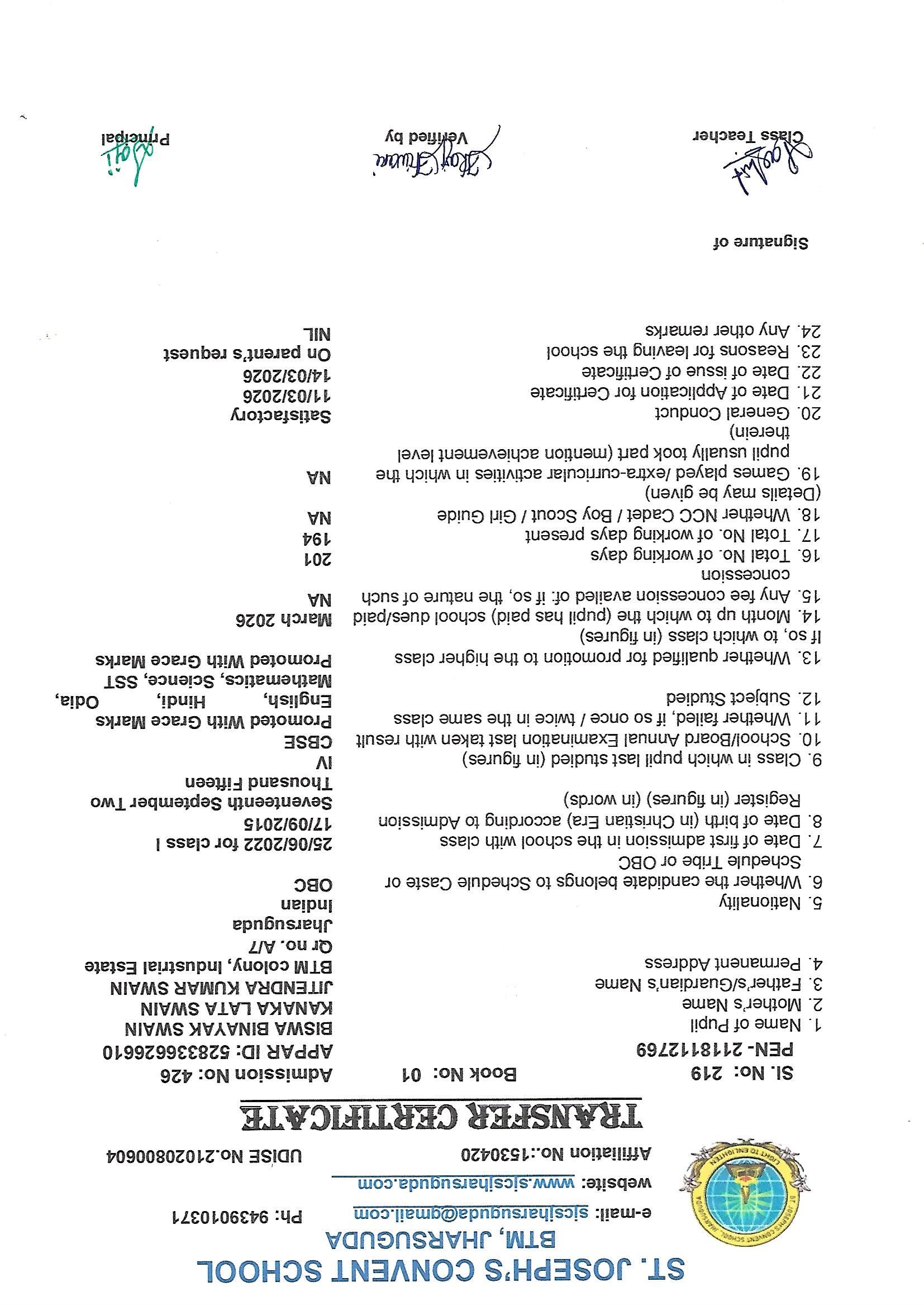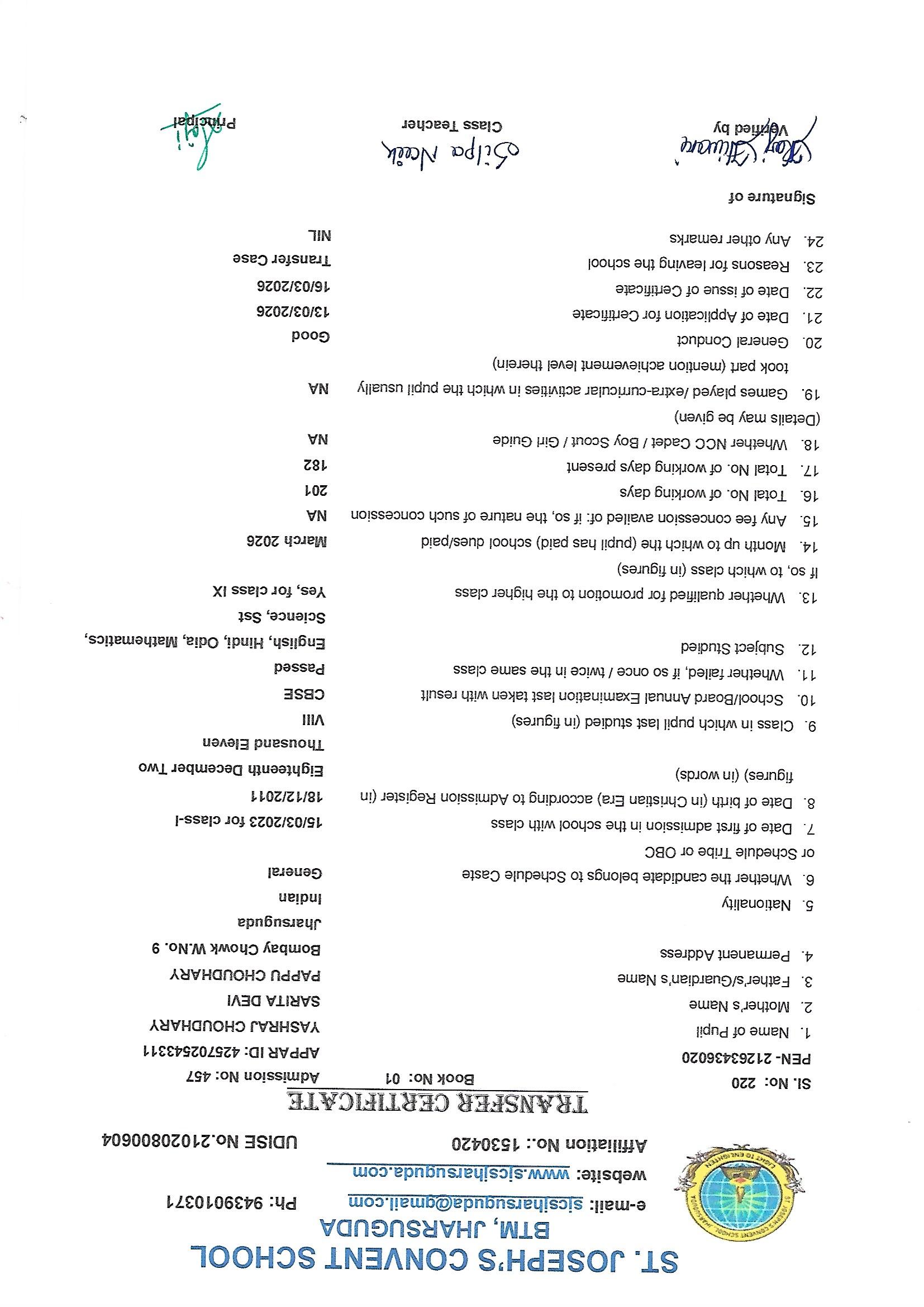 Enter your Admission Number to retrieve and download your official Transfer Certificate from St. Joseph's Convent School.