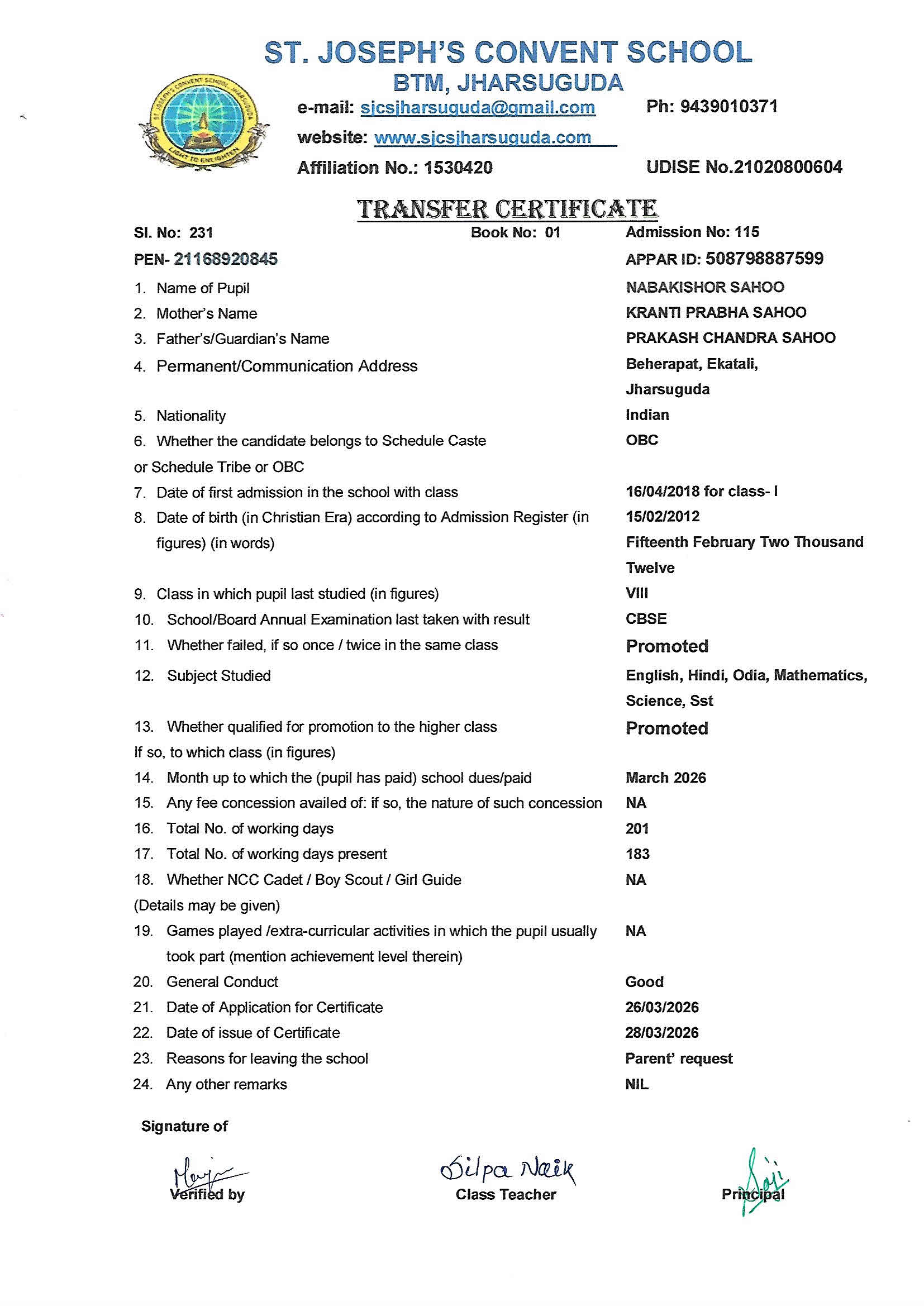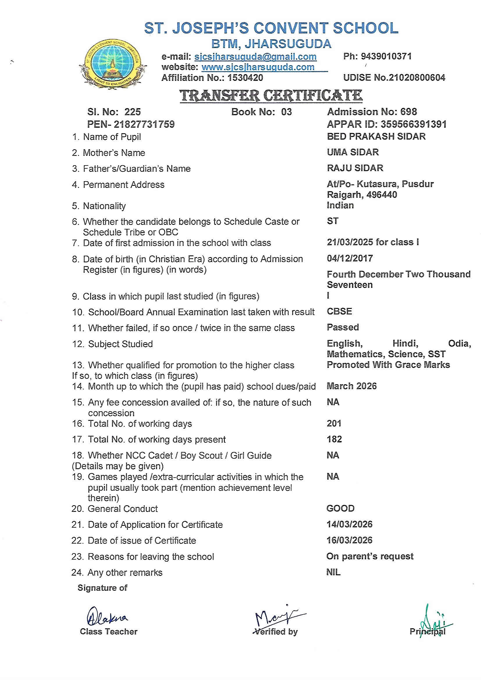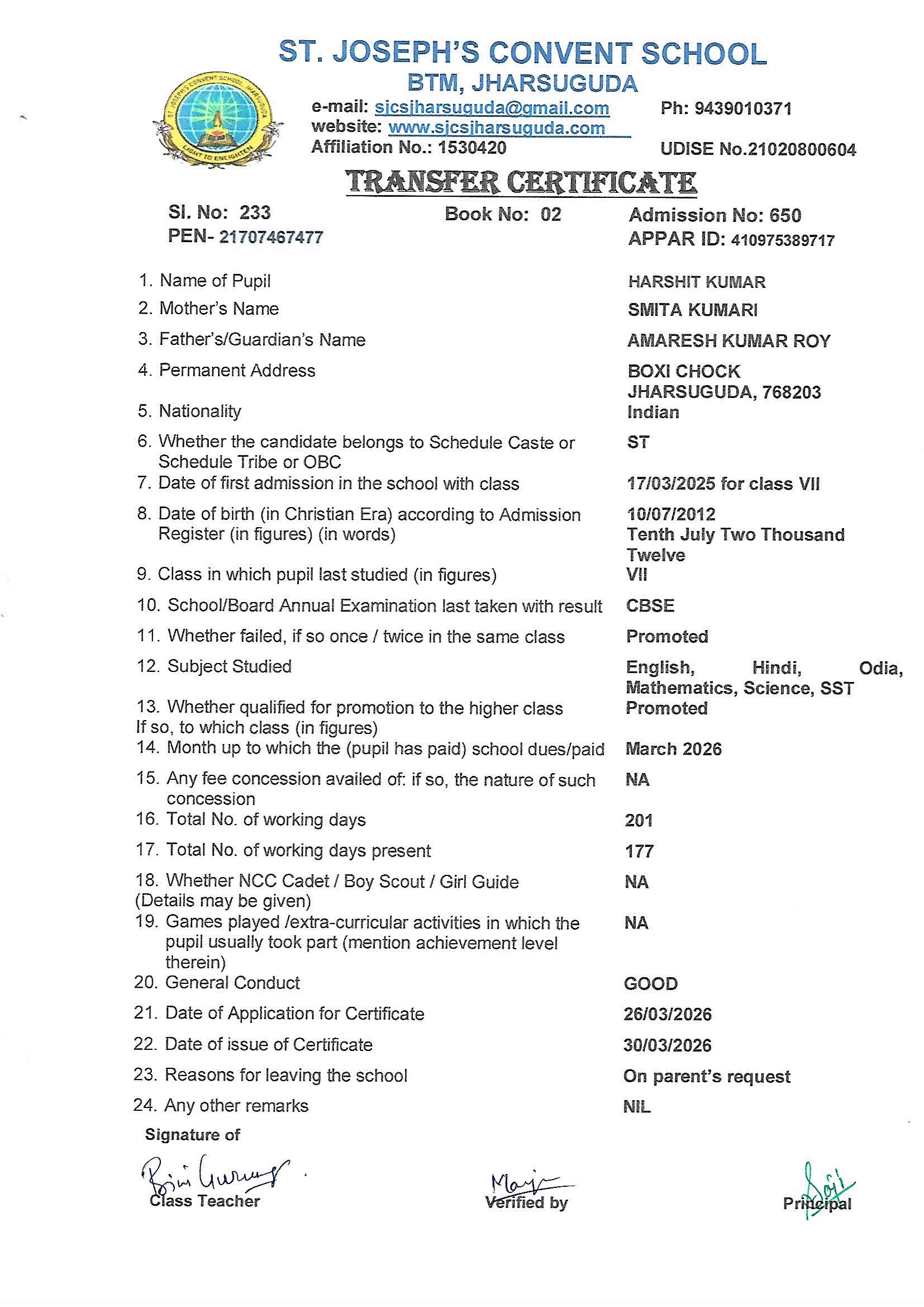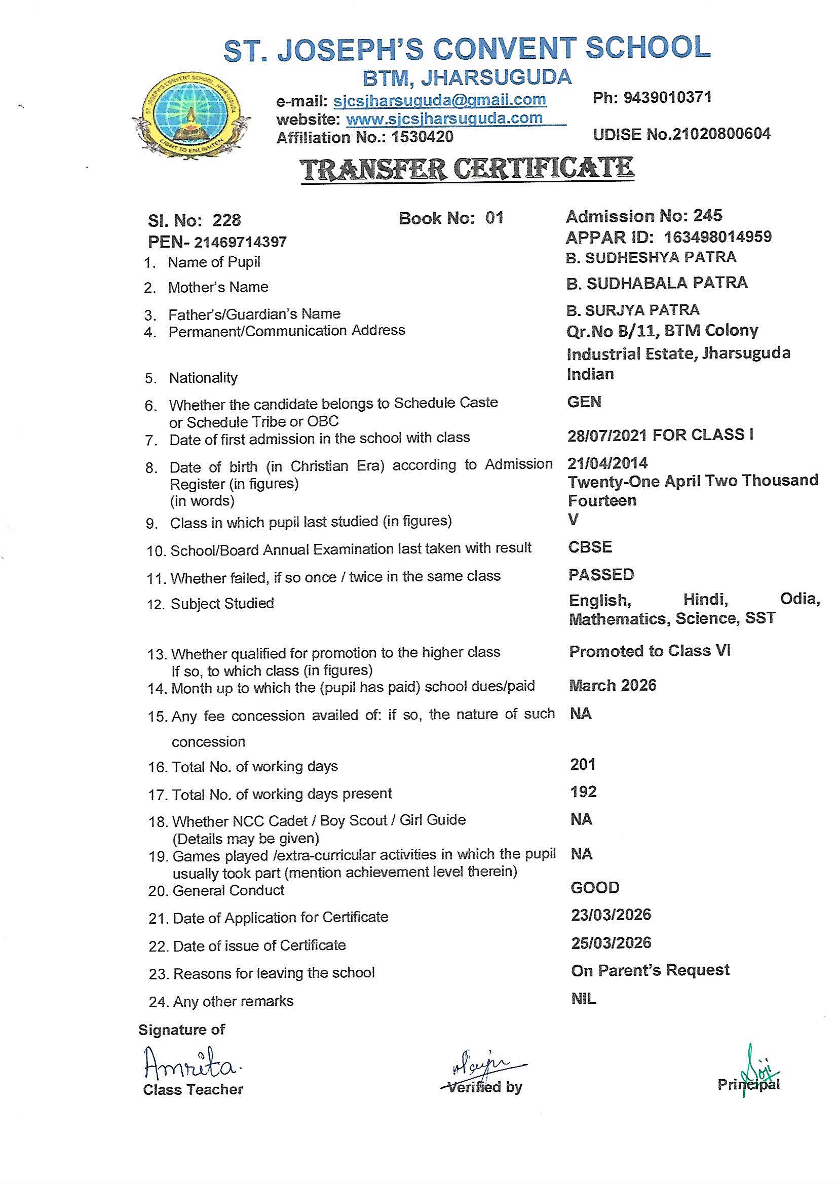 Enter your Admission Number to retrieve and download your official Transfer Certificate from St. Joseph's Convent School.