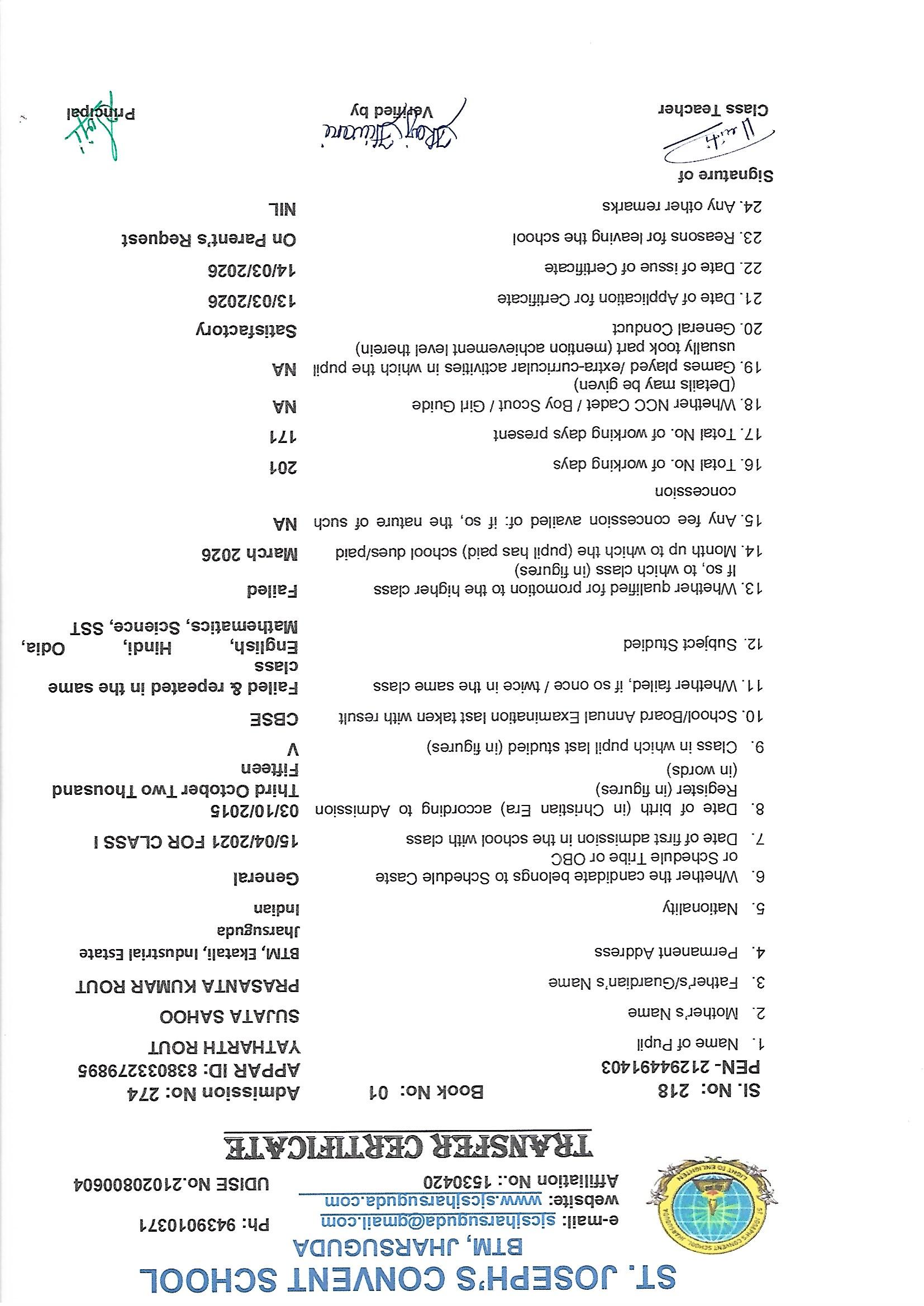 Transfer Certificate